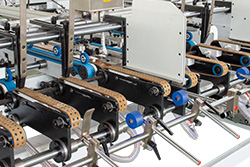 涂胶部中间糊口自动粘接采用热熔胶+封口胶双道涂胶方式,热熔胶迅速固定不走位,封口胶粘接加固,确保纸张在高温寒冷环境下都能持久粘牢;热熔胶箱采用铸铝合金一体压铸而成,加温传热速度快;冷胶箱采用不锈钢涂胶盒耐腐蚀;冷、热涂胶轮及配合组装部件均采用不锈钢材质。