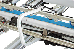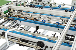 侧推纸定位部两侧拍纸采用两套伺服系统驱动四组精密滚珠丝杠侧推定位,可根据纸张边压强度高低调整侧推运动周期时间快慢,确保纸张糊口对位精准、稳定、不伤纸边。
